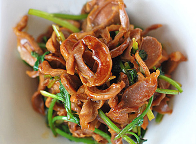 ![]() 主料:鸡胗250克 调料:食盐1/2茶匙,酱油1汤匙,葱1小段,姜1小块,蒜2瓣,料酒1茶匙,蚝油1汤匙,香菜10克,植物油2汤匙,白砂糖1/2茶匙 酱爆鸡胗的做法 1.鸡胗洗净切丝,香菜洗净切段备用 2.鸡胗凉水下锅焯水 3.鸡胗稍稍变色即可捞起沥干水分,起油锅,放入葱姜蒜煸炒 4.放入鸡胗爆炒大约半分钟,倒入事先调配好的料汁(酱油1汤匙、蚝油1汤匙、料酒1茶匙、白砂糖1/2茶匙、盐1/2茶匙) 5.迅速翻炒,待炒至均匀即将出锅前撒入香菜段儿翻炒两下即可 烹饪技巧 1、炒鸡胗之前最好焯水,可以去除鸡胗本身的怪怪的味道。焯水后再爆炒时可以节省炒制时间,鸡胗也不会炒得过老影响口感; 2、配菜也可以根据个人喜好选择,如西芹、芦笋等。 |