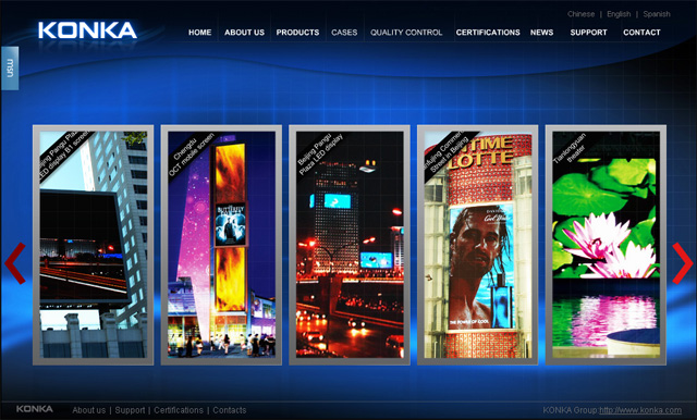 深圳市康佳视讯系统工程有限公司是康佳集团投资控股的全资子公司,成立于2001年6月份,公司注册资金1500万元。视讯公司致力于LED产品的研发、生产与销售,经过多年的市场考验,凭借领先的技术、专业的服务、规模化的生产等优势,其出色的产品及服务已为越来越多的客户所青睐,公司LED显示屏产品覆盖众多市场领域,包括城市及公共广场、交通、商业广告、娱乐演艺及其它应用,年产值超亿元。 受康佳视讯系统工程有限公司委托,经周末设计策划为其提供网站建设策划方案,页面设计,FLASH动画设计及制作,美工制作,产品图片处理,打造康佳LED的高端产品展示平台,深受康佳视讯好评,合作愉快!现网站项目已经顺利结束并上线,欢迎浏览! |