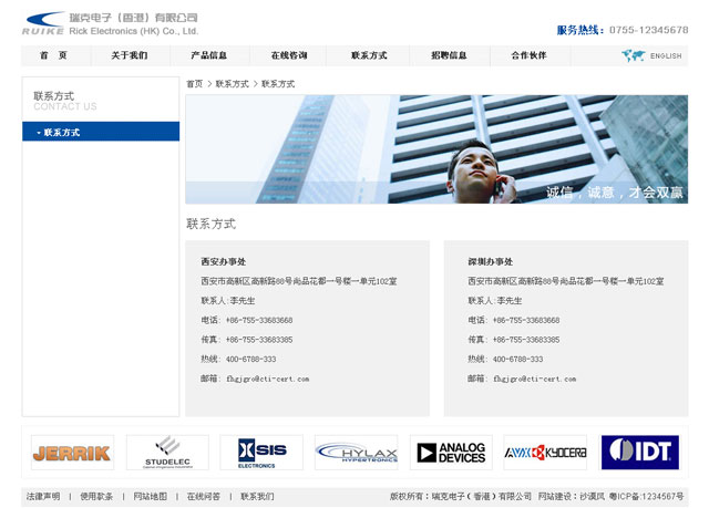 深圳专业网站制作公司-周末设计,为电子行业瑞克电子有限公司提供网站制作服务,专业设计团队为其提供网站策划,网页设计,网络平台开发服务。现网站顺利上线,欢迎浏览! 瑞克电子有限公司,是专营世界各国电子元器件的贸易公司,在西安、深圳均设有客户服务办事处,以支援国内既有的客户合作项目,同时也配合衍生的品牌代理推广工作。 在技术支援方面,瑞克电子提供全方位的技术支援服务,全套产品资料,并且可以与工程师直接对话,举办技术研讨会或交流会等。售前及售后服务方面,我司的客户服务团队均是专精英,主动回应及积极跟进,务求令客户满意。 瑞克电子的宗旨“诚信,诚意,才会双赢”:向客户兑现服务承诺,实事求是,全心全意的配合客户的需要。