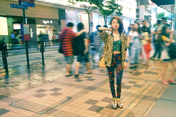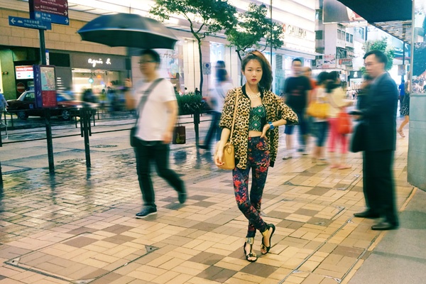 我最近貌似就一直在旅行,跑了几个地方,拍了好多照片,光整理就理了好久,今天来来说说香港游。 曾经看到这么一句话:人生要有一段奋不顾身的爱情,和一次说走就走的旅行。 现在还不需要我为爱情奋不顾身,但至少先旅行起来。 第一天的搭配是豹纹外套 复古印花胸衣 印花打底裤。单品拆开都是花的,但是合起来就还好,包包是和外套相近的米色,鞋子是拼金属色的。内搭胸衣和裤子的绿色和红色基本色就是个撞色搭配,所以其他接近肤色的单品搭配起来也不会觉得违和。 第一天下午吃好饭就开始在尖沙咀附近逛了,香港真的是逛街圣地,商店真的是无处不在!