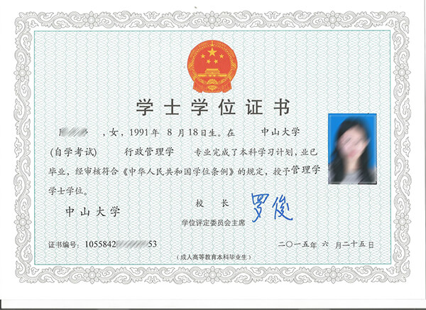 自学考试学士学位证书样本