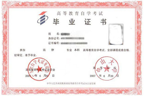 自学考试证书样本