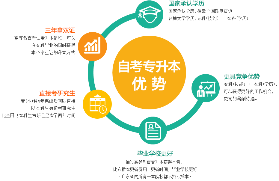 自考专升本是独立本科段,即从专科升本科的阶段,报读门槛只需有专科学历,免试入学,宽进严出,需要考生真正用心去学习,尤其适合专科在校生报考,也被称为专套本、 专本同读、自考本科等。