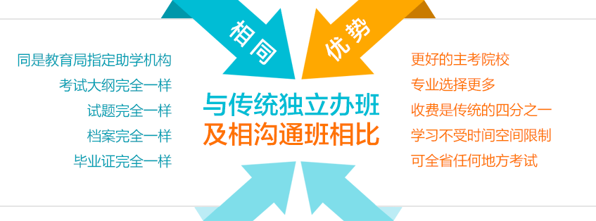 传统的教育行业已经身处于一个由互联网技术驾驭的重塑教育生态的时代,教育必须主动做出变革。启航教育通过多年的助学发现:自学考试独立 办班和相沟通班(传统面授培训班)的同学无法实现全省迁移考试,更加受限于一定要在固定的时间和地点接受面授,参加考试,有一定的局限性和不 方便,专业选择少,费用高,而且会让刚刚高考完的专科考生进入另一个三年高三(周末要坚持上课)。